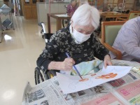 本日のレクリエーションは、ユリの花の水彩画を行いました。お好きな色の絵具を選んでいただき下絵に塗っていきます。中には、色鉛筆を選ばれる方もいらっしゃいました。「本物のユリの花もこれから咲くよね」「何色のユリの花にしようかな」と楽しみながら取り組まれました。ピンクや黄色・オレンジ色の色とりどりのユリの作品が完成しました(^O^)