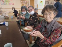 こんにちは、デイサービスです。今日はいちごジャムのパウンドケーキを作りました。ホットケーキミックス、卵、牛乳、油、果肉入りいちごジャムをまぜてオーブンで焼くだけの簡単おやつです。おいしいおやつをいただくために、ご利用者様には頑張って材料をよく混ぜてもらいました。20分程オーブンで焼くとデイルームが芳ばしい甘い香りでつつまれました♪焼きたてのパウンドケーキに生クリームをトッピングして召し上がっていただきました。「お店で食べるより美味しいよ。」「持って帰って娘に食べさせてあげたい。」等、嬉しい感想を聞くことができました(^O^)