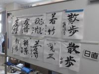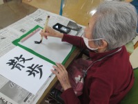 こんにちは、デイサービスです。今日は書道教室の日でした。「散歩」「ふじの花」「新茶」等、この季節に合ったお手本を用意しましたが、ご自分の名前を大きく書いてくださるご利用者様もいらっしゃいました(^O^)腕まくりで袖が汚れない様にして取り組まれたり、納得のいく作品に仕上がるまで何枚も何枚も挑戦されたりと、ご利用者様それぞれが書道に真剣に向き合ってくださいました。デイルームの書道コーナーに飾らせてもらい、しばらくお互いの作品を鑑賞していただこうと思います(*^_^*)