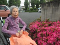 こんにちは、デイサービスです。今日は風は強かったのですが、とてもいいお天気でした。ご利用者様と一緒に施設周辺をお散歩したところ、施設敷地内の駐車場につつじが満開に咲いていたので、写真撮影しました(^O^)「遠くに行かなくてもこんな近くにきれいに咲いているんだね。」と喜んでいただけました♪