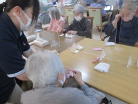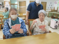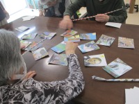 本日は、トランプと上毛カルタを行いました。トランプではババ抜きをしました。上毛カルタでは職員が読み上げ皆様は真剣な表情で絵札を探していました。「ババ抜きは何度やっても楽しいよね」「上毛カルタは子供の頃よくやったから覚えているよ」と楽しそうなご様子でした。県外出身の方もいらっしゃいますが、デイサービスで上毛カルタを何度かやっているので、自然と覚えたそうです(^O^)お疲れ様でした☆