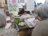 今日は、水彩画教室の日でした!今回はバラの下絵を準備し、皆様に取り組んでいただきました(^O^)ちょうど敷島バラ園も見ごろを迎え賑わっているので、水彩絵の具で塗りながらバラ園の話もしつつ楽しそうに取り組まれていました。バラにはたくさん種類があるので、黄色や赤・ピンクなどご自身がお好きな色で塗られていて色とりどりの素敵なバラの水彩画が完成していました♪