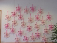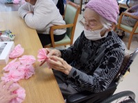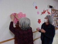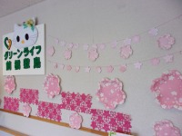 本日のレクリエーションは、壁面制作に取り組みました。皆様と協力し合い、ついに完成しました(^O^)「キレイだね~やっと完成したね」との声が聞かれ、満開の桜が見事で皆様の笑顔と共にデイルームがパッと華やぎました!しばらく楽しみたいと思います。