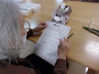 こんにちは、デイサービスです。今日は回想法レクでした。前半はテレビ画面を使って、懐かしい物の画像を見て「これは何ですか?」と質問して、物の名前と用途を答えていただきました。洗濯板、たらい、火箸、ちゃぶ台、炭アイロンなどが画面に映されると「懐かしいね、昔は洗濯板で洗ったから冬は手が冷たくて大変だったよ。」と貴重な経験談を聞かせてくださいました。後半はプリントを使って蓄音機や火鉢の思い出話を聞かせて貰ったり、昭和初期の流行語クイズに答えていただいたりと、タイムスリップしたかのような時間を過ごしていただけたかと思います(^O^)