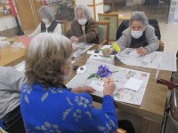 本日は、絵手紙を行いました。菊・百合・ひまわり・バラ等の生花や造花を用意しました。まず、絵手紙用の用紙に筆に黒墨を付け花材を見ながら書いていただきます。次に絵具で色をのせていき最後に一言メッセージを書いて完成です。「春よ来い」「たくましく美しく」「迎春」「ひまわりの優しく巡りて友の無事」どれも素敵な作品が完成しました(^O^)皆様、楽しそうに取り組まれ有意義な時間が過ごせました☆