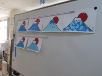 こんにちは、デイサービスです。今日は富士山と日の出のちぎり絵に取り組んでいただきました。下絵を見て色の構図を考えてから折り紙をちぎって、糊で貼りつけます。細かい作業に皆様とても苦戦されていました(>_<)同じ下絵でも完成作品はすべて違った雰囲気です。お互いの作品を鑑賞して褒め合いながら15時のお茶をおいしくいただきました!