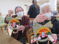 今日は昨日に引き続きお正月飾り制作を行いました。「もう正月が来るんだね~今年も元気に過ごせたからよかったよね」とお隣さん同士で話しながら楽しそうに取り組まれていました(*^_^*)また、今日は12月のお誕生日会も行いました!今月は3名の方がお誕生日を迎えられました。皆様からお祝いの歌のプレゼントがあり、お誕生日者の方も「ありがとう嬉しいよ」と喜んで下さっていました。今月お誕生日のA様・K様・A様、おめでとうございます!!