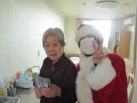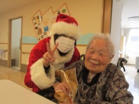 今年はサンタが入居者様の居室を一件一件訪れてささやかながらプレゼントを手渡しさせていただきました。