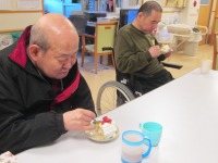おやつには厨房スタッフが心を込めて作ったクリスマスケーキを召し上がっていただき、こちらも『美味しい!!お夕飯はいらないかも』などと大変喜んでいただきました。