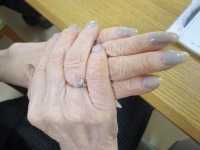 本日のレクリエーションは、新しく取り入れたハンドケア&ネイルを行いました。赤や水色、ラメ入り等様々なマニキュアを用意しお好きなタイプのマニキュアを選んでいただきます。職員がお一人ずつ丁寧に爪をやすりでかけ塗っていきます。ネイル好きのご利用者様が多く「久しぶりのネイルだわ」「見ちがえる程きれいになった」「楽しかったよ」と大変喜ばれました。また手や肩のマッサージを行い癒されていただきました。*今回使用したマニキュアは水で洗い流しや拭き取りで落とせものなのでご安心ください(*^_^*)