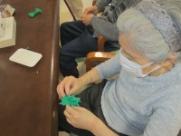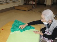 本日のレクリエーションは、クリスマスに向けて壁面制作を行いました。まず緑色のお花紙でお花を作り大きなモミの木の台紙に貼っていきます。次に赤色と緑色の折り紙でポインセチアを折りました。皆様真剣に取り組まれ「どんなのが出来るか楽しみ!」「もうすぐクリスマスだね!」との声が聞かれました。今日のところは出来るところまで取り掛かり次回続きを行います。完成が楽しみです(^O^)
