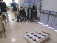 今日のレクリエーションは、ゲートボールゲームを行いました。ゲートボール経験のある方は「もっとこうしたほうがいいと思うよ」とアドバイスをして下さったり、和気あいあい取り組まれていました(*^_^*)今日は気温も低く肌寒い日だったため、ゲームで体を使い体もほっこり温まったようでした。