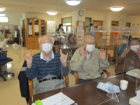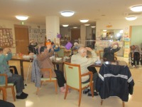 今日は、懐かしの唱歌「どんぐりころころ・こぎつねこんこん・あんたがたどこさ・七つの子」を聴き歌いながら体操をしました。指先から体全体を使いました。利用者様からは「指先の体操は難しいね」「歌と体操は脳にもいいね」「指先がポカポカするよ」「どの歌もよく知ってるよ」との声がありました。皆様、一生懸命に取り組まれました(^O^)