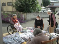 今日は午前中にふじや衣料品店様にお越しいただき入居者様に秋冬物の衣類を購入していただきました。