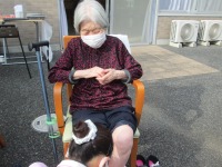 あまりのお天気の良さに職員提案の元、急遽外での実施となりました。