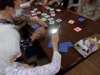 今日のレクリエーションは、カードゲームを行いました!まず、漢字カードを組み合わせて都道府県名を作っていきます。皆様、関東地方は早く見つける事ができていました☆次に、ひらがなカードを用いて好きな言葉を作っていきます。アイスやいもようかん等食べ物が多かったです☆最後に皆様お得意の上毛カルタを行いました。「上毛カルタは懐かしいね」「カードゲームは集中力がつくね」と皆様真剣な表情をされ、お隣の方と相談したり周りをよく見渡している姿が見られました(^○^)