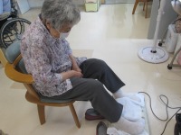 今日のリラクゼーションは、足湯と機械の振動を使った足マッサージを行いました。皆さん幸せそうな表情をされとても気持ち良さそうでした。「足が温まって体がポカポカするよ」「足がほぐれるよ」「こんな気持ちの良いことしてくれるのかい」と大変喜ばれました。これから寒くなると体が冷えますので、次回も取り入れて癒されていただきたいと思います(^O^)