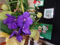 玄関では濃い紫の蘭(正確には蘭の一種だそう)が豪華にお客様をお迎えしています。