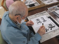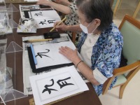 今日は書道教室の日でした。『九月』『長月』『味覚の秋』『夜長』の中からお好きな言葉を選び、取り組んでいただきました。本日の利用者様は書道経験のある方が多かったので、すらすらとあっという間に何枚も書かれていました。完成した作品を隣の方と見せ合って、お互いに褒めあっている方もいました。また、前に貼りだされた他利用者様の作品を見て「皆が上手だから俺も負けられない!」と、熱心に取り組まれている方もいました(^○^)今回の作品も書道コーナーに飾らせて頂きたいと思います!