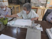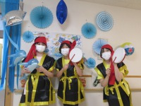 今日は制作教室にて、金魚と風鈴をつくりました。金魚はお花紙で作り、目を付けて水色の画用紙と一緒に小さなビニールの袋の入れました。利用者様からは「お祭りで金魚釣りしたのを思い出すね」との声が聞かれ、懐かしさを感じていただけたようでした。また、風鈴は画用紙で形をつくりお好きな模様を書いていただきました。まだまだ日中は暑い日があるので、お部屋でも涼しさを感じていただけるように考えてみました(^^)利用者様からは「見てるだけで涼しくなるね」との感想が聞かれ、喜んでいただけたようでした♪