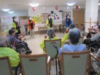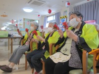 こんにちは、デイサービスです。今日は敷島デイサービス夏祭りの1日目でした。まずはじめに職員によるだんべぇ踊り&炭坑節をご覧になって頂きました。ご利用者様には鳴子やすずを持って踊りを盛り上げてもらい、炭坑節では参考になるアドバイスもいただいたりしました。次にスイカ割りです。実際にスイカを割っていただく方、周りで「もっと右だよ。」等声掛けを行っていただく方、ご利用者様皆のチームワークでなんとか無事にスイカを割ることができました(^○^)明日、明後日も夏祭り続きまーす!