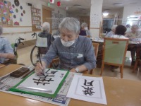 今日のレクリエーションは、書道を行いました。「萩月・向日葵・納涼・葉月・流星」などの行書と楷書の見本を用意させていただき好きな字体を選んでいただきました。今日は書道好きな方が多く、「楷書より行書がいいわ」「楷書は難しいよ」「この字を練習したい」と熱心に取り組まれました。清書された作品はデイルームの書道コーナーに貼り、皆さんと拝見したいと思います。