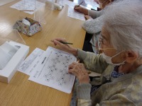 今日は、脳トレカードゲームと上毛カルタを行いました。脳トレカードゲームは50音が書かれたカードをテーブルに並べ、それらを組み合わせて言葉を作ります。手持ちのカード(作った言葉)が多い人が勝ちです!今回は職員も混ざって行いましたが、かなり頭を使うので職員も苦戦するほどでした(^○^;)次に上毛カルタを行いました。「懐かしいね~」と話しながら楽しく取り組みました!A様がものすごい速さでカルタを取っていき、ダントツの一位でした!