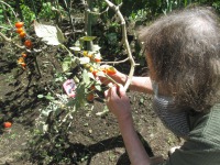 こんにちは、デイサービスです。今日はM様に暑さ対策で麦わら帽子を被っていただき、敷島ファームのナスとミニトマトを収穫してきました。残念ながら、きゅうりは休息期間の様で収穫できませんでした。なすとミニトマトをオリーブオイルで炒めて梅こぶ茶で味付けしたマリネを作ってみました。ご利用者様からは「あっさりしていて美味しいね。」とお褒めのお言葉をいただけました(*^_^*)