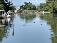今日の前橋市の最高気温は36度の予想ですがこの暑さの中、池のカルガモ達は気持ち良さそうに水面をスイスイと泳いでいます。