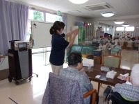 また、後半は頭と肩のマッサージを職員が順番に行いました。「気持ちいいね。」「頭のマッサージまでしてもらえるとは思わなかったよ。」と喜んでいただけたご様子です。