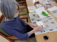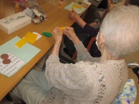 今日は8月のカレンダー制作を行いました。8月のカレンダーはひまわりの花と葉を折り紙で作り、カレンダーに貼りました。そして雲や虹、太陽などご自身のお好きなイラストを書いていただき完成です!夏らしいとても可愛らしいオリジナルカレンダーが出来あがりました(^○^)利用者様からは「売ってるものよりもこっちのほうがいい!」「わたしここでのカレンダー制作をとても楽しみにしているのよ」と嬉しい声がきかれ、楽しんで頂けたようでした!