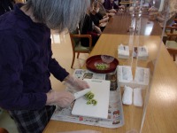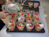 こんにちは、デイサービスです。今日はフルーツポンチ作りを行いました。桃、パイナップル、キウイをひと口大に切り、白玉団子をこねて茹で、冷蔵庫で冷やしたら、仕上げにサイダーを注いで完成です。蒸し暑い日にぴったりのさっぱりとしたヒンヤリおやつにご利用者様も「冷たくておいしいね。」「こんなの初めて食べたよ。」と大好評でした。