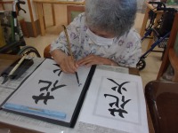 今日は書道教室の日でした。今回もお好きな手本を自由に選んでいただき、書いていただきました。皆様、とても集中され黙々と取り組まれていました。今回も素晴らしい作品が沢山出来あがりました。今回の作品もデイルームの書道コーナーに飾らせて頂きたいと思います(^O^)