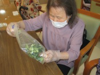 こんにちは、デイサービスです。今日は敷島ファームで収穫したきゅうりとナスを使って浅漬けを作りました。きゅうりとナスを薄く切り、塩昆布とごま油を入れて軽くもみこむだけです。30分程寝かせてからおやつの時間に召し上がっていただきました。「おいしいけどもう少し塩気があったほうがよかったかも。」「ごま油がいい味出してるね。」「ナスの浸かりが弱いから次は塩もみしてからの方がいいね。」等たくさんのご感想と意見をいただきました。次もどんな調理をするか楽しみです(^O^)