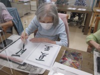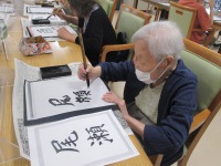 今日のレクリエーションは書道教室でした。今回は『尾瀬』『夏至』『初夏』等の手本を用意し、お好きな手本を選んで書いていただきました。水曜日の利用者様は書道経験のある方も多く、皆様とても上手に書いていらっしゃいました。今回書いて頂いた作品もデイルームの書道コーナーに展示させていただこうと思います(*^_^*)