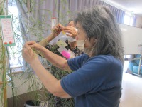 今年も敷島デイ利用者様のT様より笹をいただいたので、今日は先日から作っていたお飾りを早速みんなで飾りました(^O^)皆様、お願い事をしながら一つ一つ丁寧に飾って下さいました。カラフルな七夕飾りが沢山吊るされ、とても綺麗な七夕の笹になりました!七夕当日まで飾る予定なので、しばらくみんなで楽しみたいと思います★