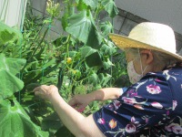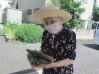 先月植えた敷島ファームの野菜が実りました!今回植えたのは、きゅうり・ナス・ピーマン・ミニトマトです。先日から少しずつ大きくなってきていて、今日立派なきゅうりとナスが収穫できました★利用者様も野菜の成長を楽しみにしていらっしゃったので、今日収穫した野菜を見て「わ~まさか大きいのができたね!」と、とても喜んでくださいました。浅漬けにするか…ぬか漬けにするか…ナスとピーマンで炒め物も美味しそうですね♪皆で食べるのが楽しみです(^O^)