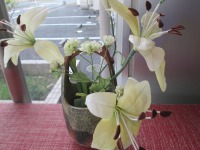 玄関やデイルームに飾らせていただいていますが、パッと見ると本物のカサブランカのようです。