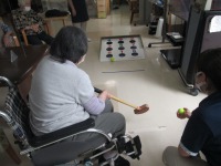 こんにちは、デイサービスです。今日のゲームレクはパターゴルフを行いました。ゴルフ経験者の方からアドバイスをもらって高得点目指して頑張りました。「ゴルフなんて初めてやるの」と言う女性や車イスの方も全員参加です(*^_^*)皆さん優勝目指していますが、他の方がやるときは「頑張ってー」「もう少し弱めに打った方がいいみたいよ。」等、たくさん応援して下さいます。敷島デイサービスのご利用者様の仲の良さが伝わるレクの時間となりました。