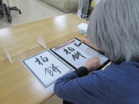 こんにちは、デイサービスです。今日は書道教室を行いました。「初夏」「柏餅」「ふじの花」等のお手本の中からお好きな言葉を選んで取り組んでいただきました。書道経験者のご利用者様もたくさんいらっしゃるので皆様とても熱心に集中して書いてくださいます。納得できる作品に仕上がるまで何度も挑戦されて、自身のある作品を提出してもらいました。暫くデイルームの書道コーナーに貼らせていただきます。