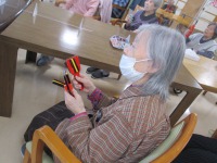 今日の音楽レクは鳴子や鈴やタンバリンを使い、音楽に合わせて演奏しました♪なかなか楽器に触れる機会もない為、「楽しい!」「みんなでやるといいね!」などと楽しんで頂けました(^O^)また、音楽体操や音楽を使った脳トレなども行い一時間たっぷりと音楽に触れながら脳も活性化されました!