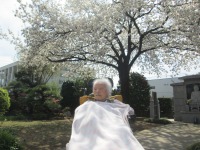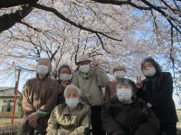 こんにちは、デイサービスです。今週は桜見学ドライブの1週間でした。今日も敷島公園、国体道路、桃の木川沿いの桜は満開で、充分に見ごたえのあるドライブとなりましたが、実はドライブに行かなくても施設のご近所のお寺にも立派な桜の木が咲いているのです。A様とお寺までお散歩してきました(^O^)心地よい空気の中、満開の桜を見て、春を感じるひとときを過ごせました。写真撮影のときだけマスクを外してます<(_ _)>