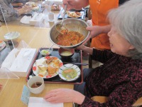毎月1回パンバイキングの日はあるのですが、今日はパンバイキングの他におかずもバイキング形式でいただきました。メロンパン、あんぱん、サンドイッチ(たまご、ツナ)等たくさんの種類のパンが並び、おかずもアクアパッツァ、タラモサラダ、エビフライ、チキンナゲット、トマト煮込み等とてもおしゃれな洋食が並びました。「目だけでお腹がいっぱいになりそうだよ。」「沢山いただいたけど最後にもう一つパンを食べてみようかな。」とご利用者様からも大好評でした(*^_^*)
