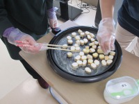 今日は料理教室でお麩のラスクを作りました。材料は、お麩・バター・グラニュー糖・ホワイトチョコ・ミルクチョコで出来ます。まず、バターをひいたホットプレートでお麩を両面軽く焼きます。そのあとにグラニュー糖をまぶしたり、冷ましたお麩には溶かしたチョコをかけて完成です(^O^)簡単な工程であっという間に表面はカリッとした美味しいお麩のラスクが出来ました!皆様からは、「美味しいから何個でも食べられちゃうね」と大好評でした♪