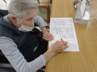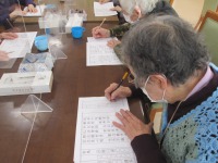 こんにちは、デイサービスです。今日は箸を使ったリハビリゲームを行いました。節分の豆まきで使った豆が残っていたので、箸を使って大豆を器から器へ移して、終わったら隣の方へバトンタッチしていくという豆移しリレーをチーム対抗で行いました。皆様とても器用なので大豆移しリレーが思いのほか早く終了した為、次はピンポン玉をお箸で移すリレーにしてみました。普段の生活でピンポン球を箸でつかむということがないので、こちらのゲームの方が皆様、苦戦していました(*_*)