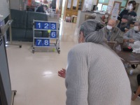 今日は、的当てゲームを行いました。始まる前は「わたしへたくそなのよ~」「わたしはいつもビリだからダメなの」なんて仰っていましたが、いざ始まると次々と高得点を出していき白熱した戦いとなりました(^O^) 中には「お父ちゃんの顔を的に思い浮かべて投げたらうまく当たったよ!」と言い、日頃のストレスをぶつけていた方もいらっしゃいました(笑)