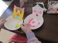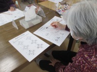 豆まきの後は節分豆移しゲームに参加していただきました。鬼のお皿から福のお皿にスプーンで豆を移すという手のリハビリも行えるゲームです。皆様、とても器用に豆を移されていました。