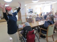 今日のレクリエーションは音楽を使った体操やイントロクイズを行いました(^O^)音楽体操では、最初は歌を歌いながら体操をするということが皆様難しいようでしたが、だんだんと慣れてきて最後の方では楽しそうに歌いながら体操に取り組まれていました。イントロクイズでは、イントロが流れると皆様「あ!これわかるのに曲名が出て来ない~」とおっしゃりお隣さん同士で相談し合いながら楽しく参加されていました♪