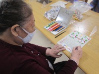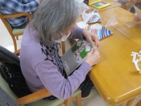 こんにちは、デイサービスです。今日は来年1月のカレンダー制作を行いました。折り紙で門松を作って、来年の干支の寅やお花のイラストを貼りました。色鉛筆で日付に色を付けて完成です。デイサービスご利用日に色を塗る方や通常のカレンダーどおりに日祝日に色を塗る方等、それぞれのご利用者様のオリジナルカレンダーが仕上がりました(*^_^*)「こんな素敵なカレンダーが出来たよ。」と皆様とても嬉しそうに持ち帰って下さいました。