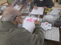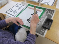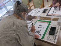今日のレクリエーションは、利用者様に好評の書道教室を行いました。今回は『十二月』『北風』『師走』などの中からお好きな言葉を選んでいただき書いていただきました(*^_^*)お隣さんと褒め合いながら真剣な表情で取り組まれていました。